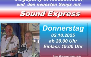 Do., 02.10.2025 die MEGAPARTY mit „Sound Express“